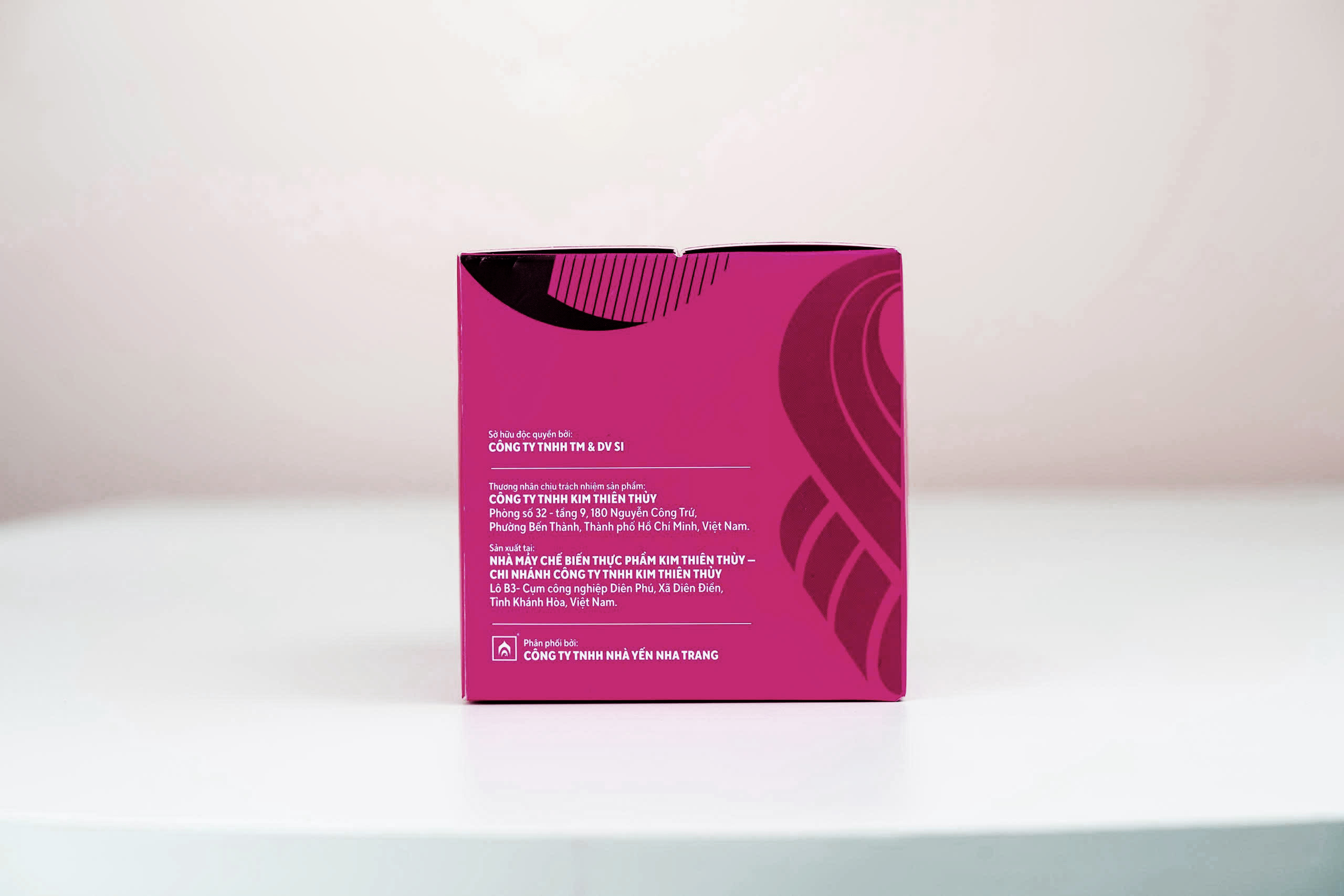 - Nước tinh khiết, đường phèn, yến sào (2.25g), chất ổn định (418), hương caramel, collagen (0,9g)