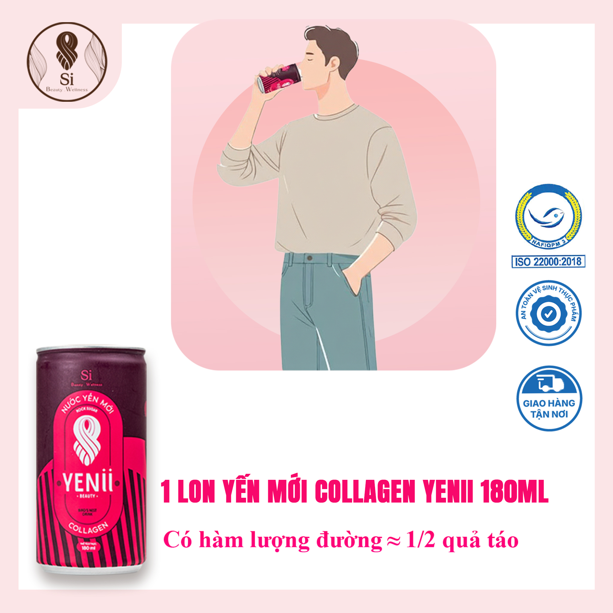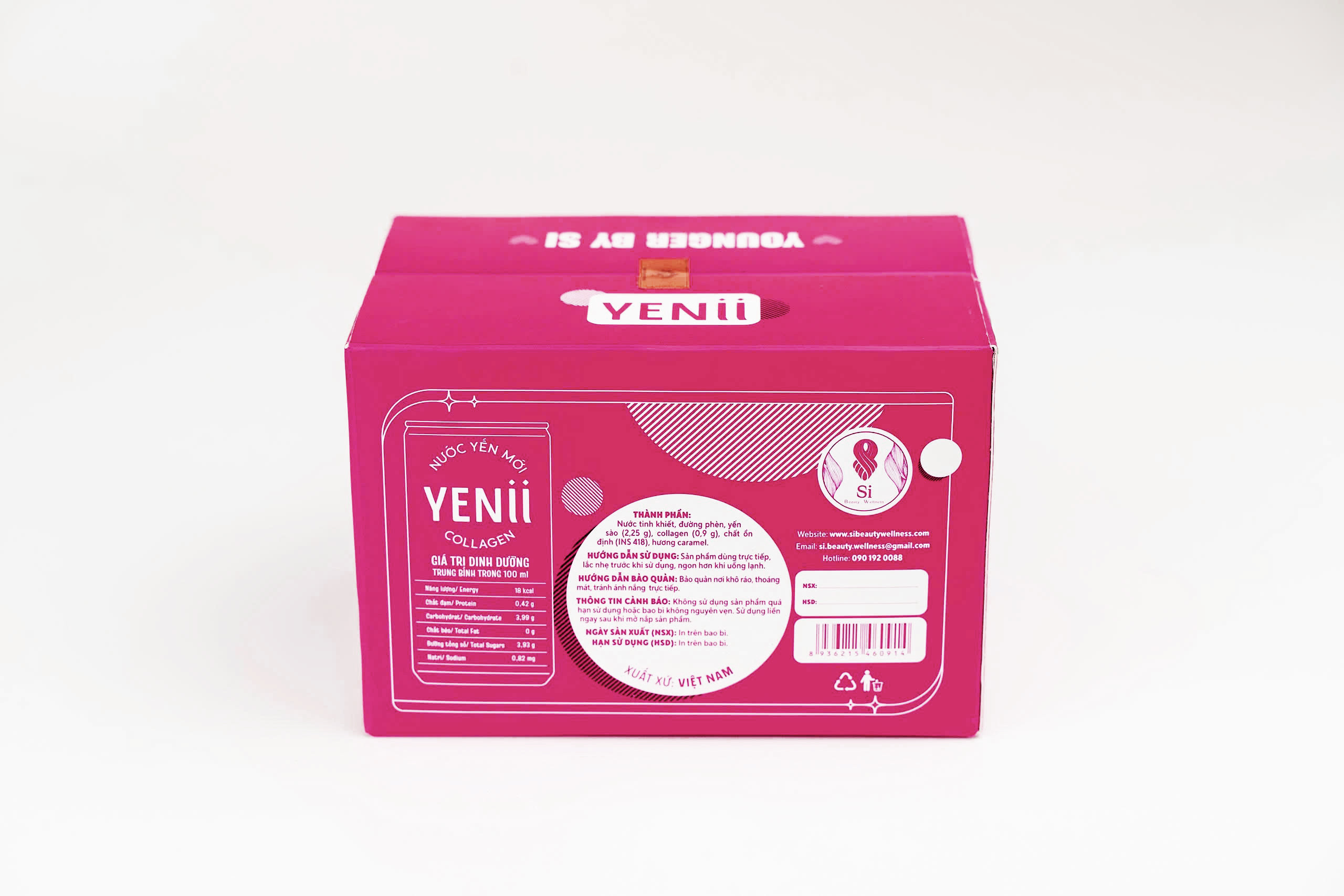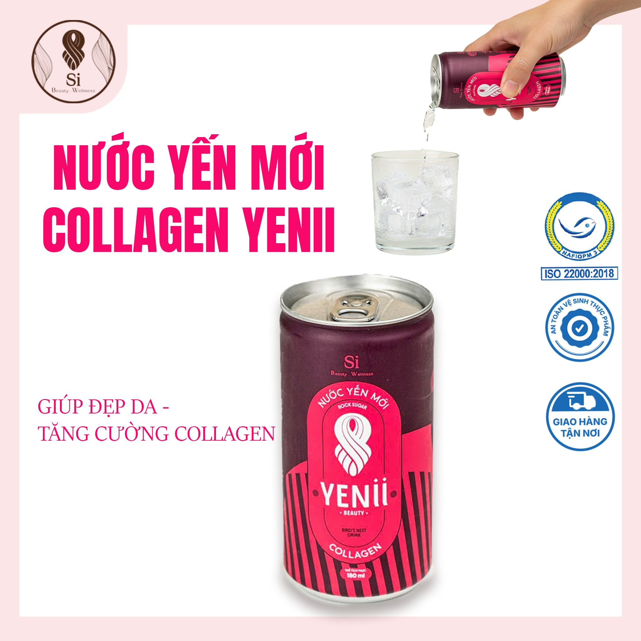 Nước yến mới Collagen Yenii được sở hữu độc quyền bởi Công Ty TNHH TM & DV SI với những công đoạn nghiêm ngặt, đáp ứng đầy đủ các tiêu chí, bổ sung dinh dưỡng, ít calo, không chất béo hỗ trợ giữ dáng, tốt cho tiêu hóa, làm da sáng ngời, chứa hàm lượng Collagen cao.